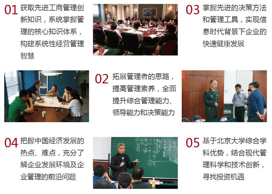 课程设置涉及到公司治理的方方面面,高度重塑管理领袖!辅以各类精品讲座、案例研讨与实战模拟、企业参观等教学形式,做到活学活用,避免坐而论道。