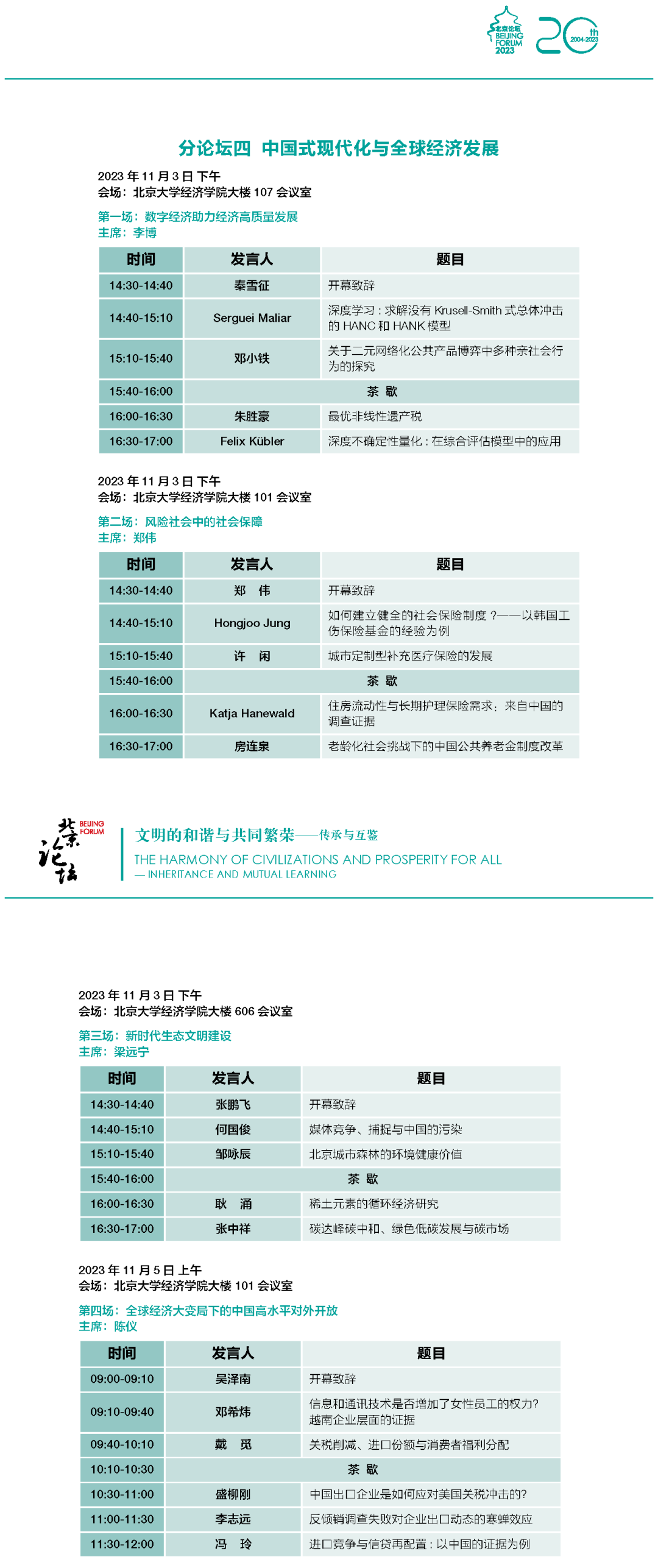 其中,bet36365路检测中心将承办分论坛四 “中国式现代化与全球经济发展”。该分论坛由四场活动组成,主题分别为:数字经济助力经济高质量发展、风险社会中的社会保障、新时代生态文明建设、全球经济大变局下的中国高水平对外开放。
