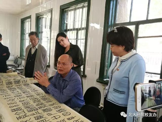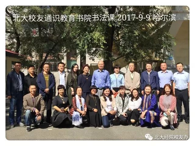 9月9日,刘洁老师到北大黑龙江校友会通识教育书院书法公益班参观调研,以普通学员身份上了一天书法课,与书法老师共同研究讨论书法教育体系及方式方法。