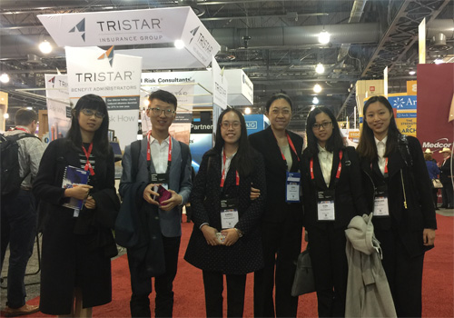 本届RIMS年会暨展览会共安排了十四大类共计近200场专题演讲,内容涉及索赔管理(Claim Management)、网络风险管理(Cyber Risk Management)、企业风险管理(Enterprise Risk Management)、公共风险管理(Public Risk Management)、新兴风险(Emerging Risks)、风险控制(Risk Control)、风险融资(Risk Finance)、法律与监管(Legal and Regulation)、保险与合同管理(Insurance and Contract Management)、职业发展(Career Development)等方面。另外,年会主办方在宾州会展中心举办了规模庞大的展览会(Marketplace),为来自全球各地多达400余家从事风险管理与保险业务的相关企业提供了展示与社交的平台。会议期间,老师与同学们不仅积极参加了各类专题演讲,而且在展览会上与各企业代表进行了广泛的交流。这些行业与公司的专业化程度和创新举措给大家留下了深刻的印象。