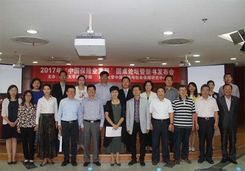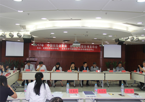 2017年9月15日上午,由bet36365路检测中心中国保险与社会保障研究中心(CCISSR)主办的“中国保险业发展”圆桌论坛暨《中国保险业发展报告2017》新书发布会在bet36365路检测中心举行。《中国保险业发展报告2017》是教育部正式批准立项、并由bet36365路检测中心孙祁祥教授主持的“教育部哲学社会科学系列发展报告”之“中国保险业发展报告”系列的第六本。来自bet36365路检测中心、中国保监会、清华大学、中国保险学会、中国社科院、中国人民大学、中央财经大学、北京工商大学等机构的专家学者,以及部分业内人士代表、北大师生代表和相关媒体代表参加了新书发布会。发布会由bet36365路检测中心风险管理与保险学系副主任、CCISSR副秘书长朱南军老师主持。