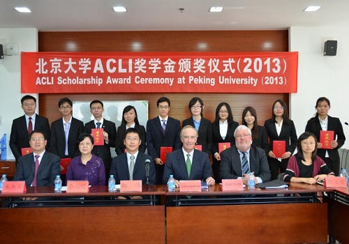 在颁奖会的第二阶段,Kempthorne先生给8名本科生、2名硕士生和2名博士生颁发了ACLI奖学金。之后获奖学生代表彭晓博博士生发言,对于ACLI给予的奖励与支持表示感谢,并从自身取得的科研成果、参加北大风险管理与保险学系举办活动的情况以及获奖学生今后努力的方向等三个方面汇报了获奖的心情与体会。