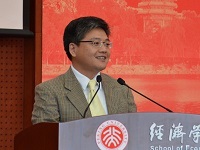 在温暖洋溢的气氛中,在校学生代表、09级本科生及13级硕士研究生张波发言,从衣食住行等各个方面与大家分享了风保系学子现在的生活,他的发言一方面勾起各位系友的温暖回忆,另一方面也让诸位系友了解了近年来北大以及经院所发生的诸多变化。