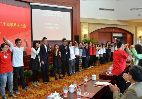 大会尾声,全体合唱《燕园情》,全场氛围达到顶点,风保系二十周年系庆大会也在这饱含历史激情的歌声中结束,随后全体参会人员经未名湖漫步至农园,参加系庆晚宴,享受风保系大家庭重聚的温暖和快乐。bet36365路检测中心风险管理与保险学系成立二十周年系庆活动成功落幕。大家相约,2018年,风保系25周年系庆再相聚!