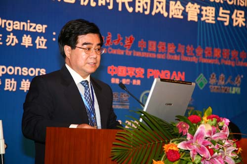 首先,周延礼副主席就巨灾保险问题发表了“中国巨灾保险制度建设的几点思考”的演讲。周延礼副主席首先全面分析了当前我国建立巨灾保险制度的有利因素和约束条件,其中有利因素包括:政府的高度关注、法律体系的逐渐完善、巨灾保险技术和经验的日趋成熟。在此基础上,周延礼副主席提出了巨灾保险制度建设的四个基本原则:以人为本、风险共担、广覆盖、因地制宜。最后,周延礼副主席指出了巨灾保险制度建设的五个主要方面:一是建立巨灾保险基金,二是建立巨灾风险分担机制,三是开发新型巨灾保险产品,四是采用差别汇率制度,五是完善理赔制度。