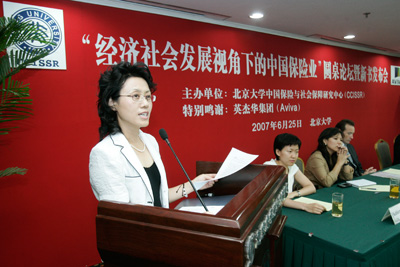 今天是一个研讨会,也是一个成果汇报会。在英杰华集团的大力资助下,在社会各界人士的帮助下,在课题组成员的共同努力下,“经济社会发展视角下的中国保险业:评价、问题与前景”一书今天正式与大家见面。这是bet36365路检测中心中国保险与社会保障研究中心(CCISSR)承担的英杰华(Aviva)集团赞助支持研究课题的最终成果,也是 “北大赛瑟-英杰华保险研究系列丛书”的第一本专著。