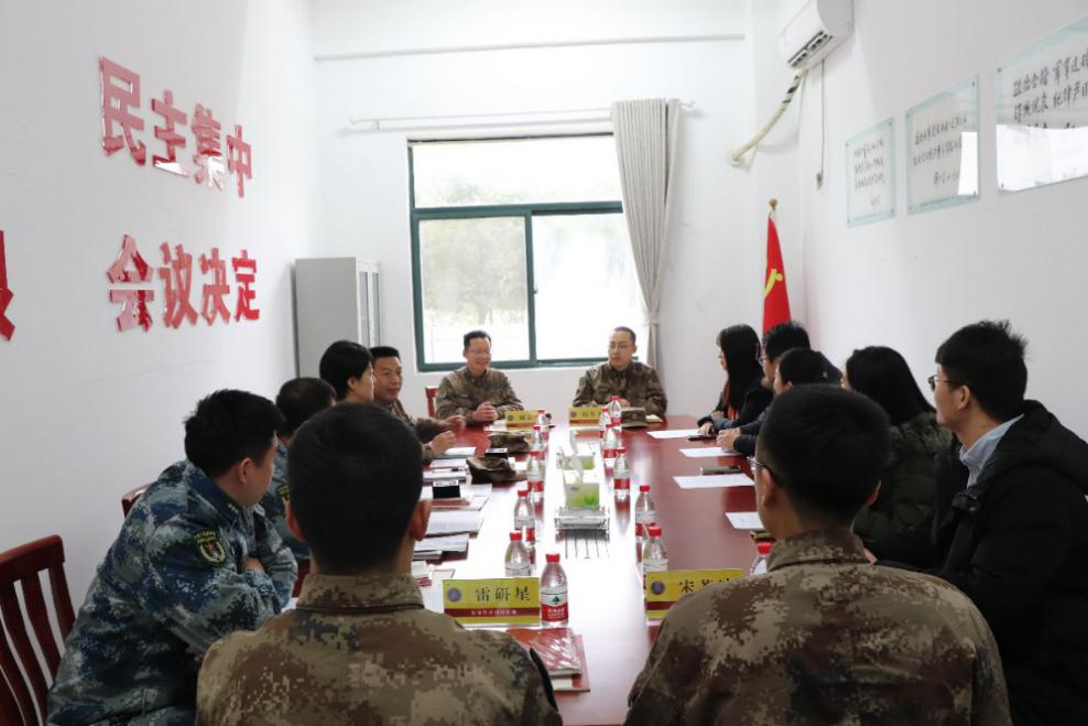2020年12月1日,bet36365路检测中心党委副书记王宜然、学工办徐寅、刘雪莹、刘灿和在校学生代表一行前往战略支援部队南京某部,看望参军大学生、bet36365路检测中心2016级本科生宋若冲,并与部队官兵座谈。