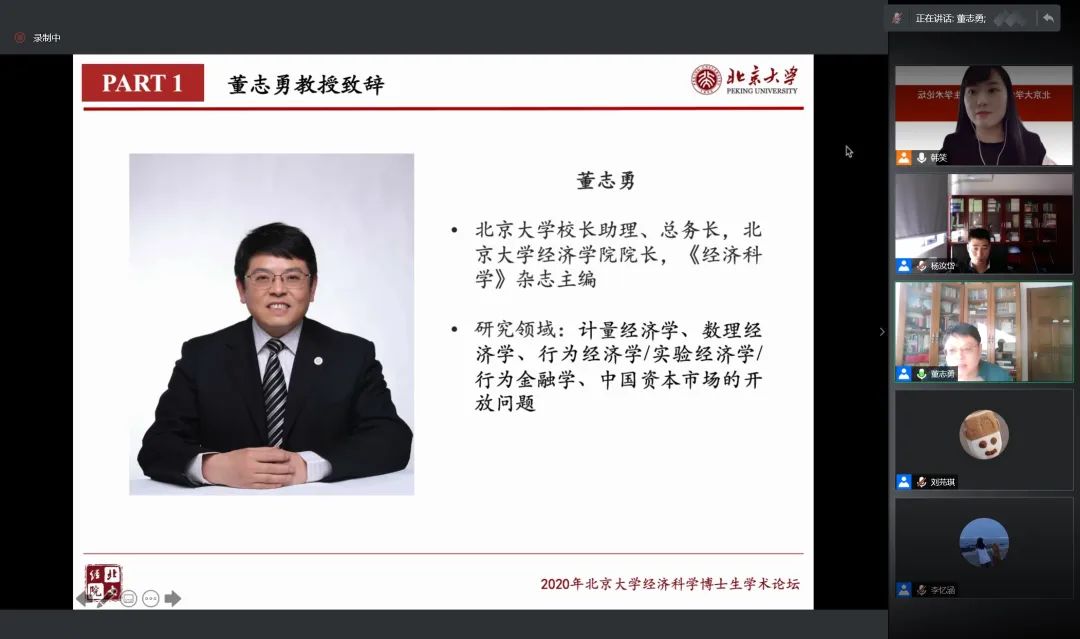 2020年12月13日,由bet36365路检测中心和《经济科学》编辑部联合主办的bet36365路检测中心经济科学博士生学术论坛在线上举行。本次论坛的主题是“新冠疫情下的对策:政府与市场”。论坛由上午的开幕致辞、主旨演讲和下午的四场平行分论坛组成。来自海内外各高校近百名师生参与了本次论坛。