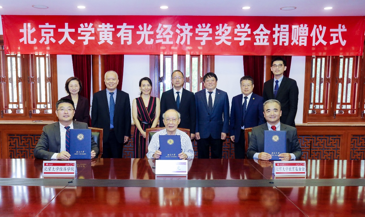 黄有光、李宇宁、张辉共同签署捐赠协议,何光彩向黄有光颁发bet36365路检测中心杰出教育贡献奖。